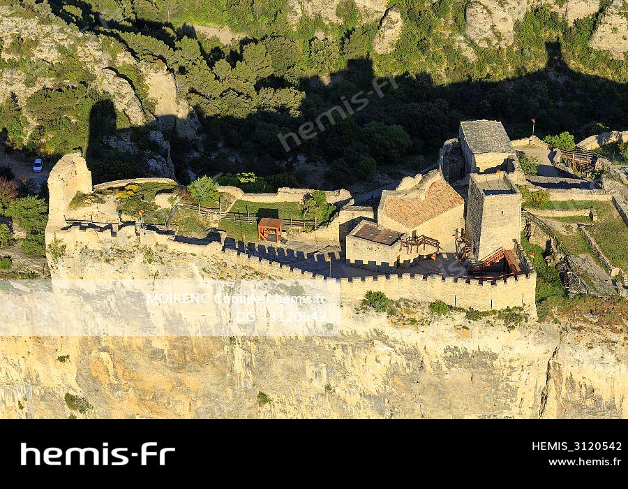 France, Vaucluse, Mornas, Fortress of Mornas (137 m) (aerial view)