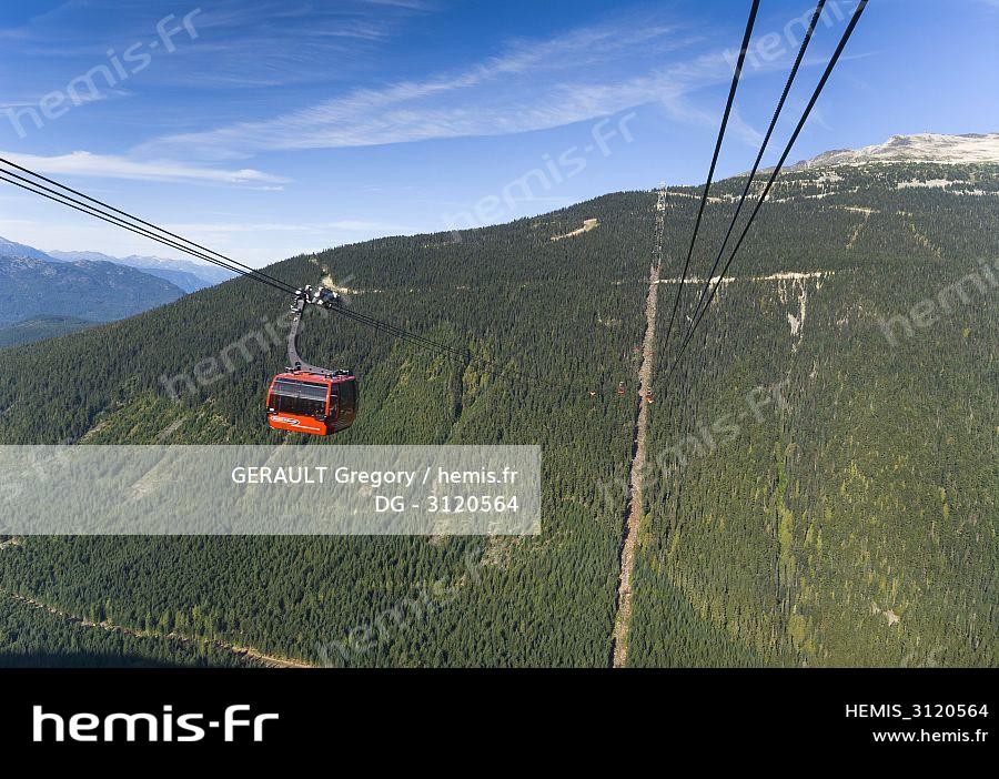 Canada, Colombie-Britannique, Whistler, télécabine du peak to peak Gondola reliant les montagnes de Whistler et Blackcomb