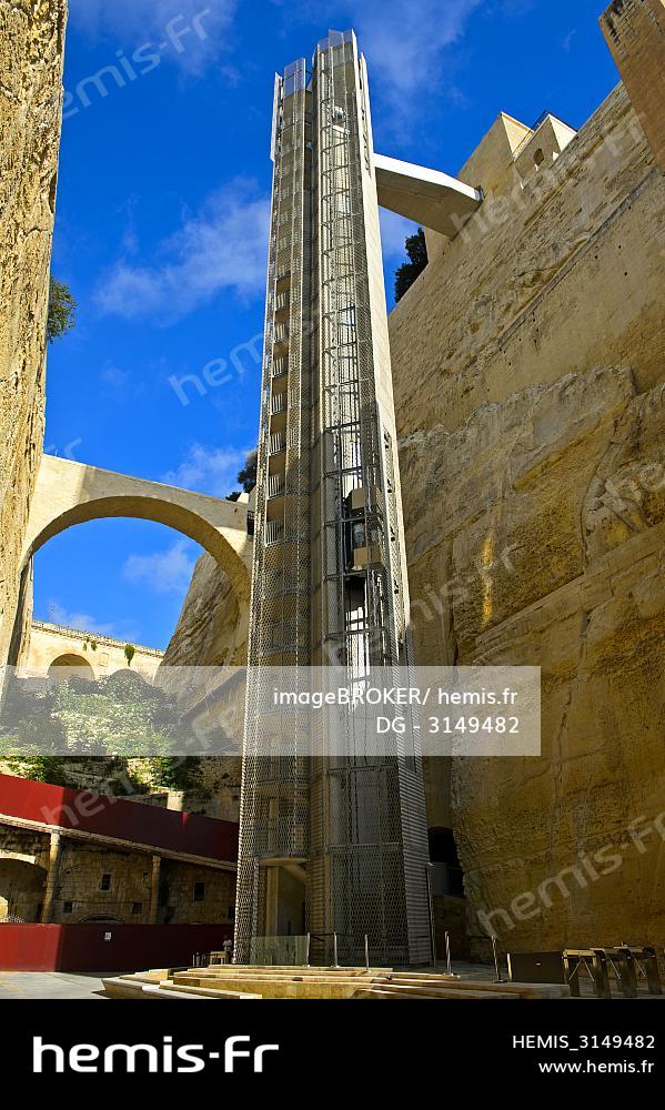 Malte, La Valette, classée au patrimoine mondial de l'UNESCO, ascenseur de Barraca
