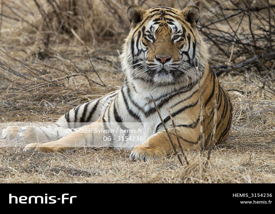 Afrique du Sud, Réserve privée, Tigre du Bengale (Panthera tigris tigris), au repos