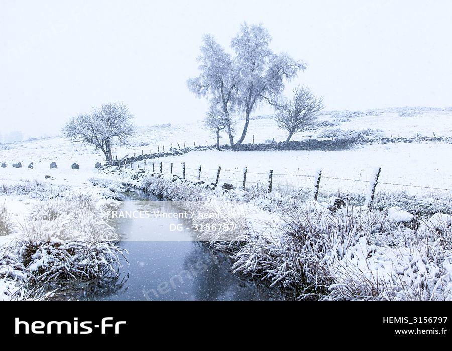 France, Lozere, Nasbinals, way of Compostela under the snow