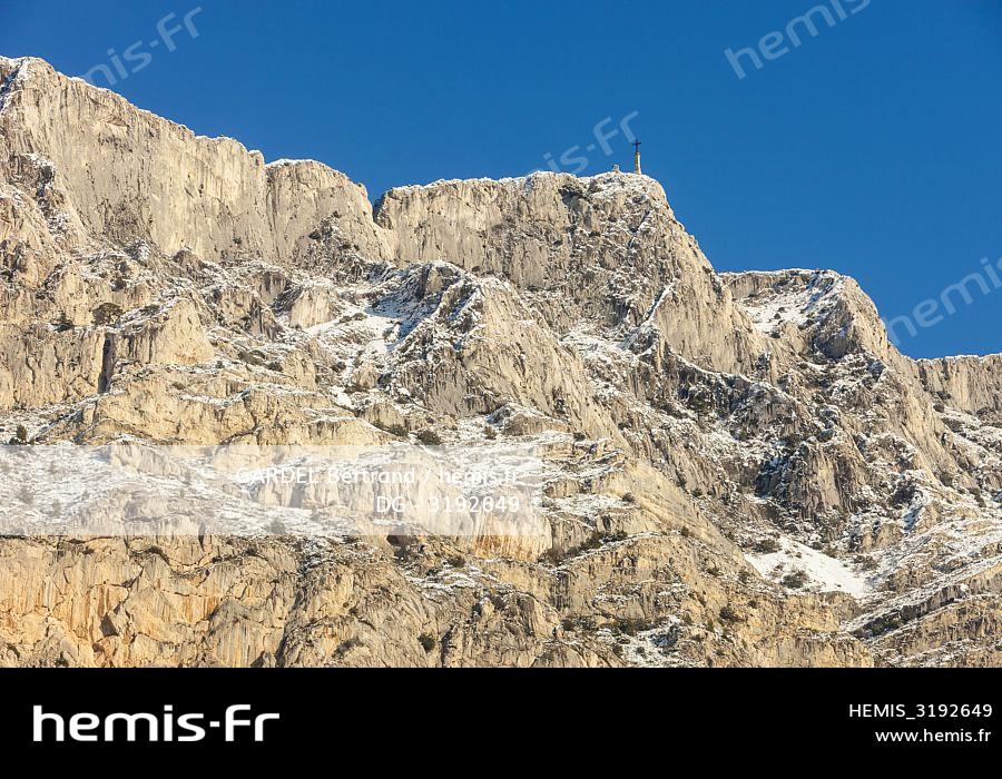 France, Bouches du Rhone, Pays d'Aix, the Sainte Victoire mountain under the snow