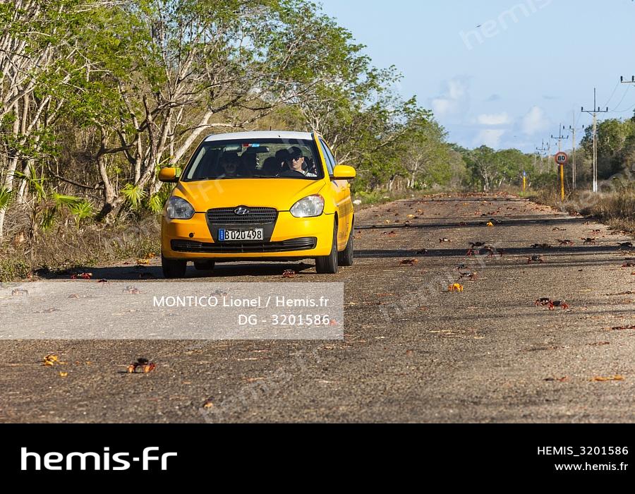 Cuba, Zapata Peninsula, Bay of Pigs, crabs cross the road to breed