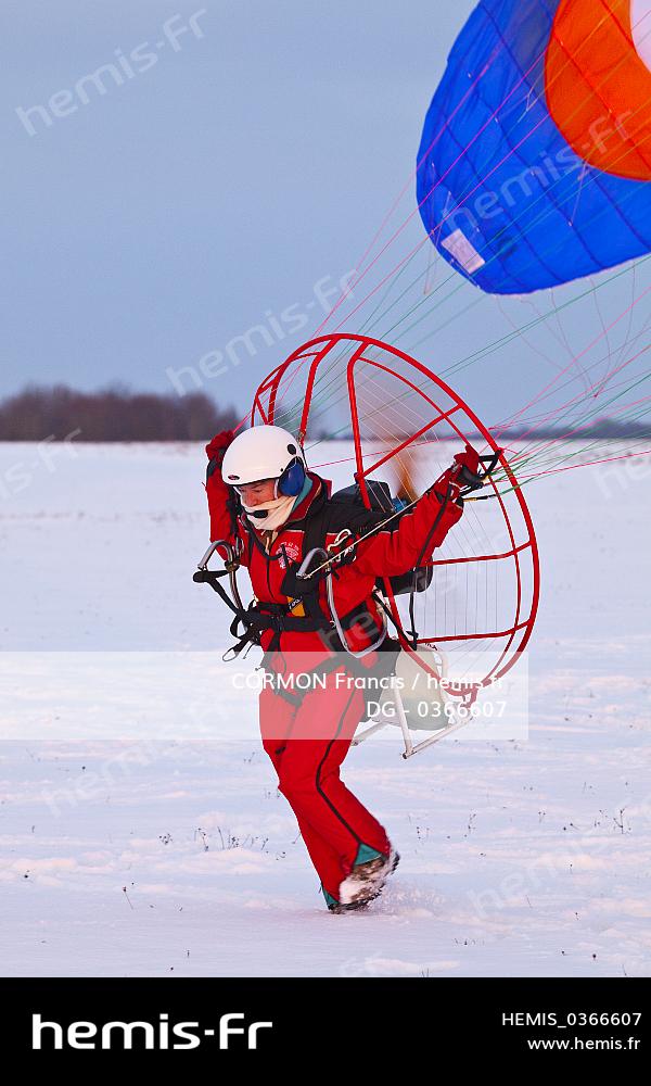 France, Eure, Vesly, Nadine is taking off, paramotor Yvasion 2000 R80