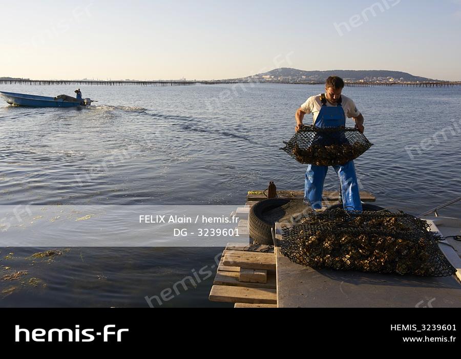 France, Herault, Bouzigues, Thau pond, oyster farming, oyster farm, Sylvain Blanquet compagny