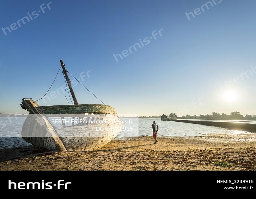 France, Morbihan (56), Ile d'Arz, épave à la pointe de Berno