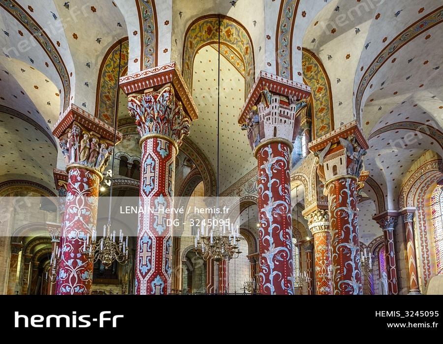 France, Puy de Dome, Issoire, Saint Austremoine abbatial church dated 12th century, columns in the ambulatory