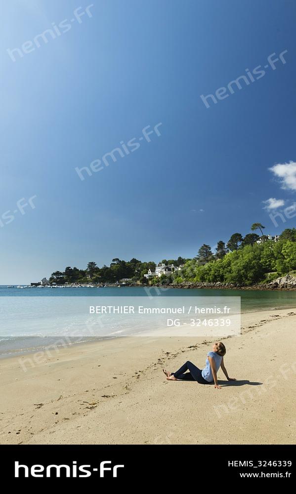 France, Finistere, Nevez, woman on the beach of Port Manec'h