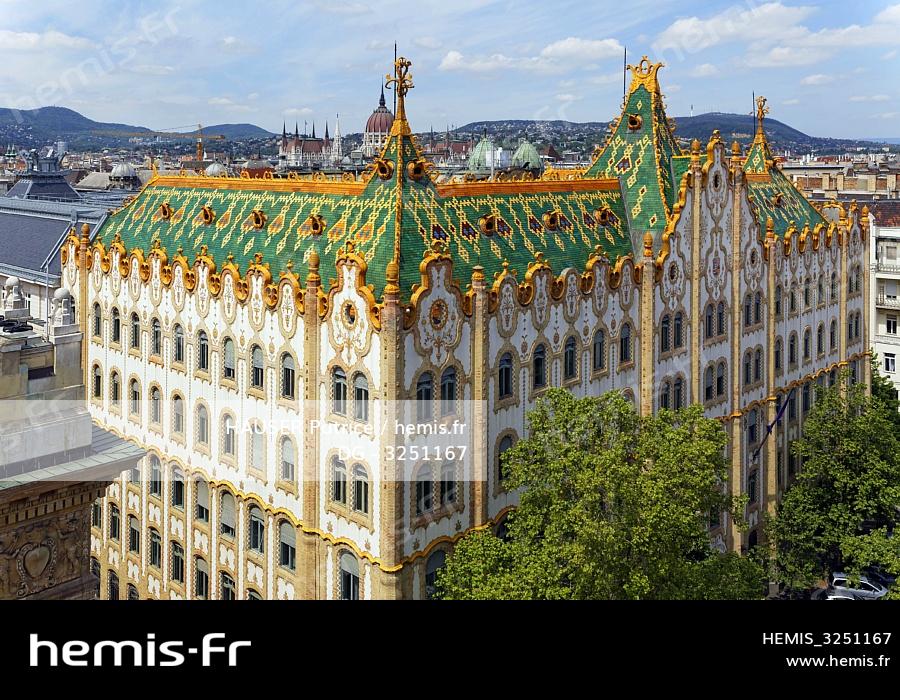 Budapest, Hungary, area classified as World Heritage, the roof of the Post Office Savings Bank (current seat of the National Bank of Hungary) built between 1899 and 1902 by the architect Ödön Lechner