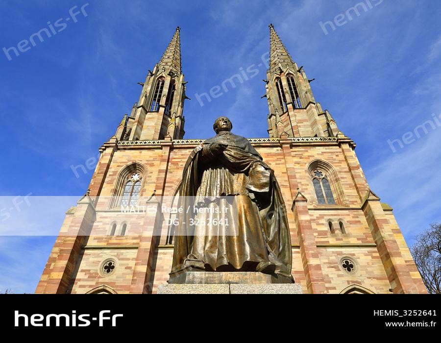 France, Bas-Rhin (67), Obernai, le monument Freppel devant l'Eglise Saint-Pierre et Paul