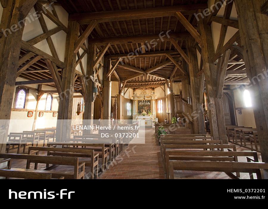 France, Marne (51), Outines, l'intérieur de l'église à pans de bois sur la Route Touristique des Eglises à Pans de Bois