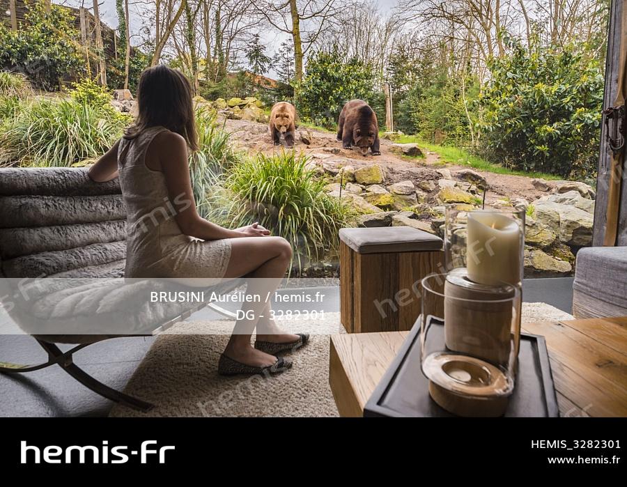 France, Sarthe (72), La Flèche, Zoo de la Flèche, hébergement insolite en famille au Beaver Creek Lodge pour un face à face intime avec les ours du Kamtchatka (ursus arctos beringianus), Statut de Protection, Convention de Washington Annexe II A (CITES), Statut UICN, Risque minimum, Préoccupation mineure (LR-lc), ici au salon