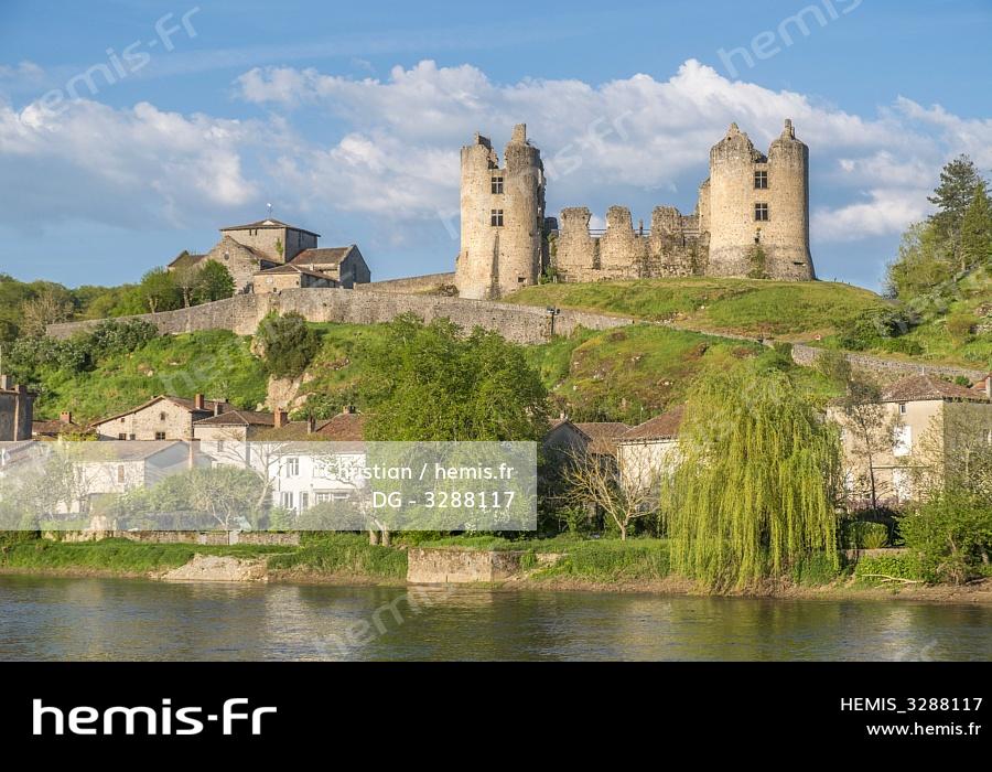 France, Charente, Saint Germain de Confolens dominated by the castle of Saint Germain, Vienne valley