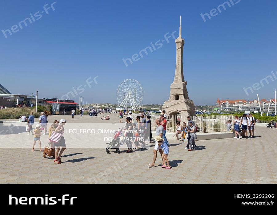 France, Pas-de-Calais (62), Cote d'Opale, Le Touquet, place du centenaire, tour eiffel de sable de 9,5 mètres réalisée par l'artiste Alain Godon