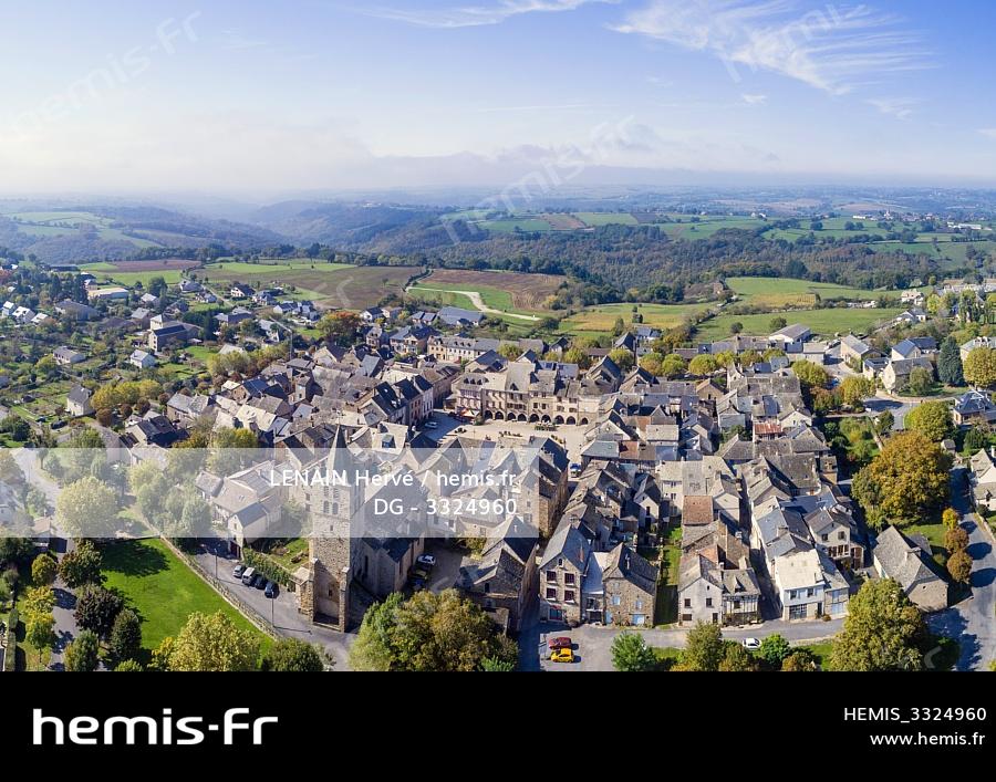 France, Aveyron, Sauveterre de Rouergue, labelled Les Plus Beaux Villages de France (The Most Beautiful Villages of France), the bastide (aerial view)