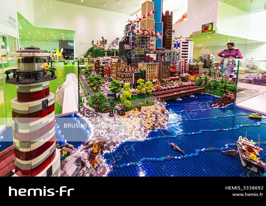 Denmark, Jutland, Billund, Lego® House is the Lego® experimental center for the general public with 25 million bricks available over 12,000 m2 in six zones: the red zone dedicated to creative skills, here the green zone to develop social skills, the yellow zone to express emotional skills, the blue zone for the awakening of cognitive skills, the zone of monumental works and the underground historical museum,
