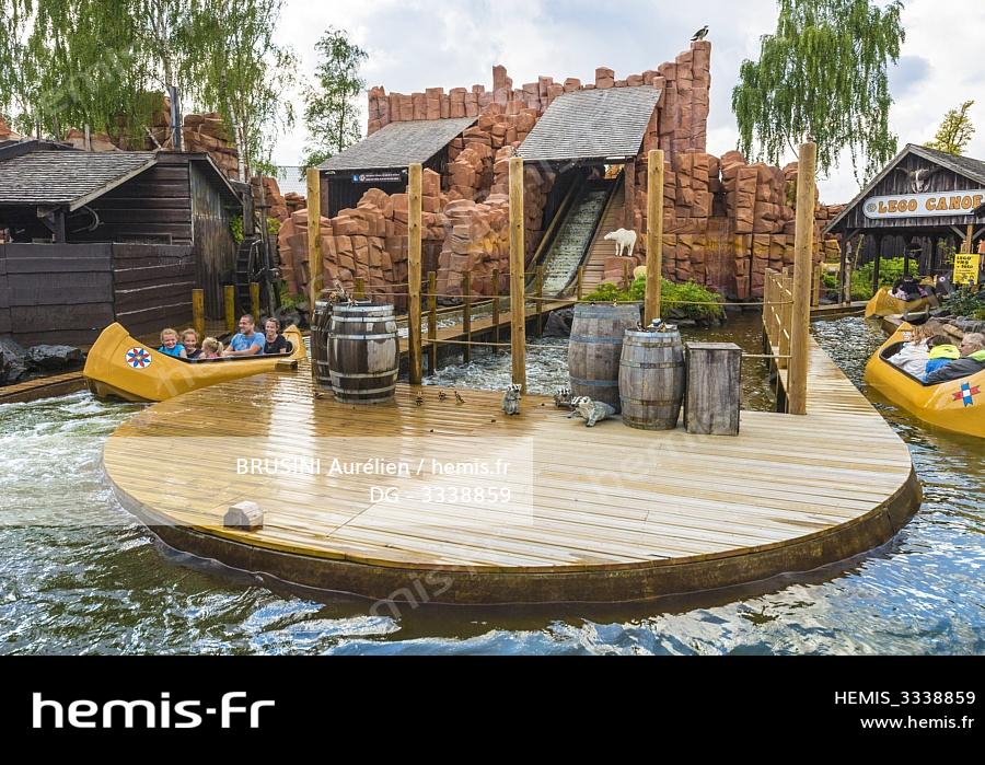 Danemark, Jutland, Billund, Legoland® Billund est le tout premier parc Legoland créé en 1968, près du siège de l'entreprise Lego® (le terme Lego est dérivé du danois «Leg godt» qui signifie «joue bien»), il est composé des espaces suivants : Miniland, ici les décors grandeur nature de LEGO Canoe dans Legoredo Town, Imagination Zone, Knights' Kingdom, DUPLO Land, Pirate Land, LEGO City, Dino Island, Fun Town, Adventure Land, LEGO X-Treme, Traffic, Kingdom of The Pharaohs, Land of The Vikings,