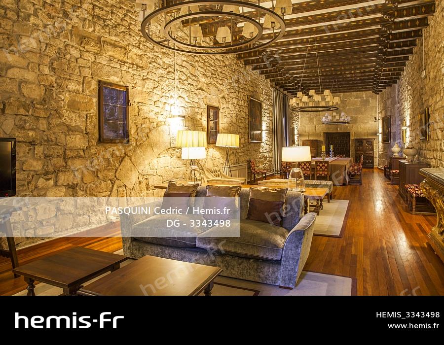 Espagne, Guipuzkoa, Pays Basque, Fontarrabie, intérieur du chateau de Charles Quint transformé en parador