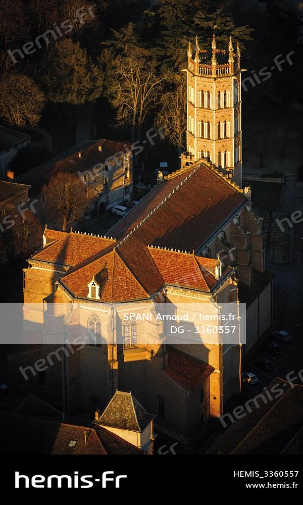France, Ariège (09), Pamiers, Abbatiale Saint-Volusien , vue aérienne de la cathédrale de Pamiers