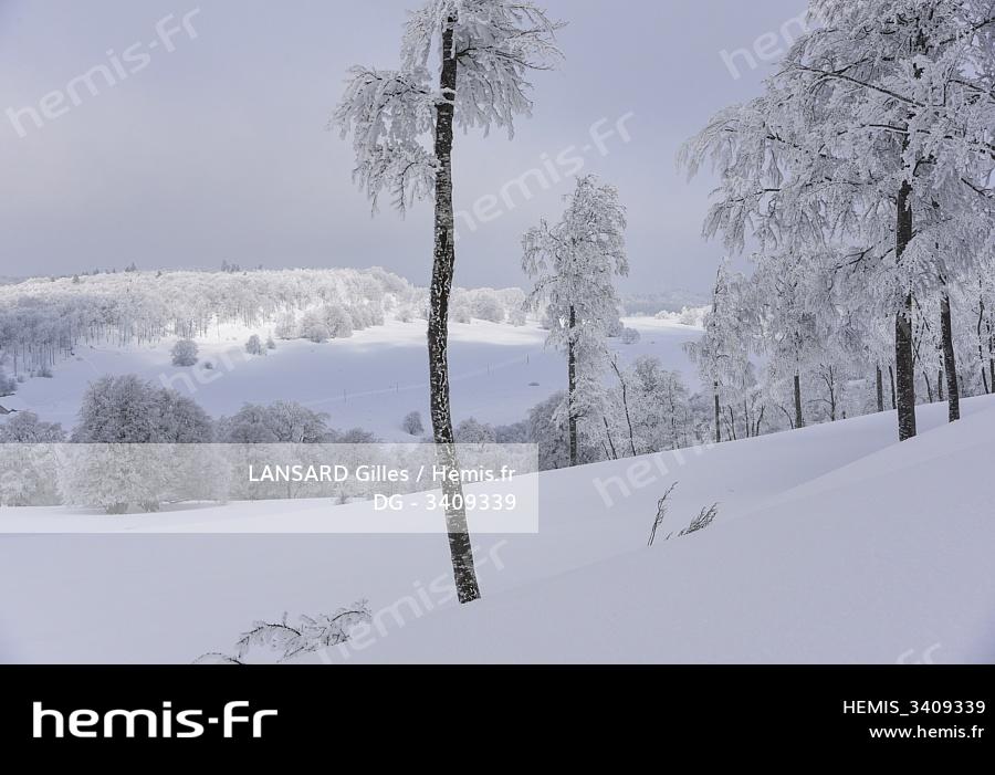 France, Ain, GTJ large crossing of the Jura, the southern part between Cuvery's pass and the deep ski station of Sur Lyand on a Nordic footpath skiing course, quietly from the Tumet