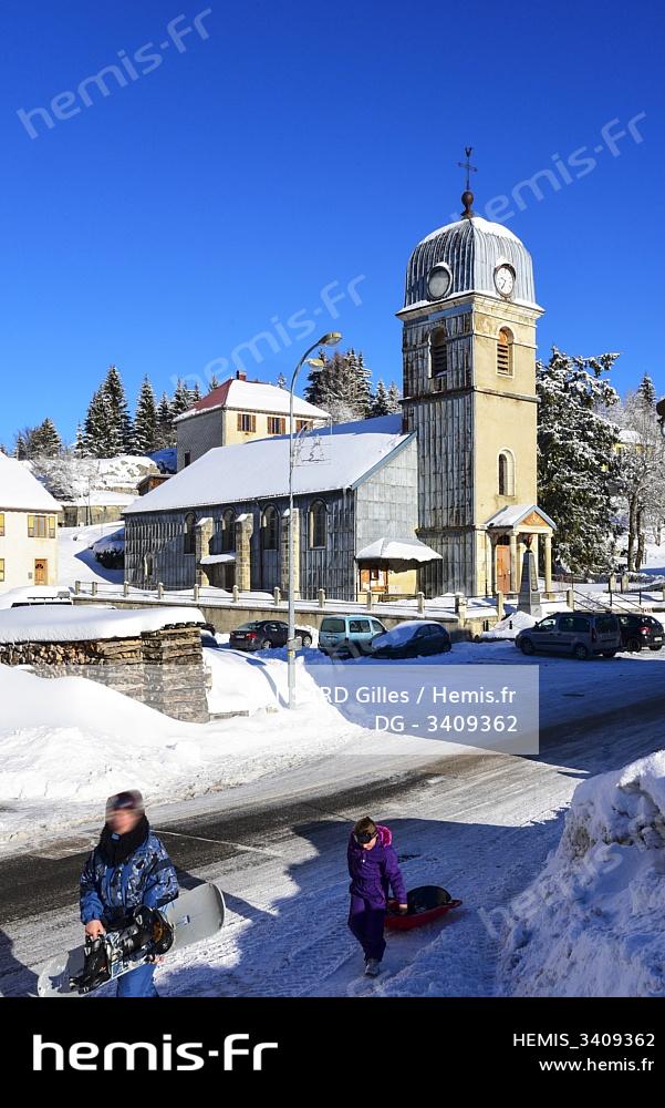 France, Jura (39), GTJ grande traversée du Jura en raquette; le village de la Pesse sous la neige