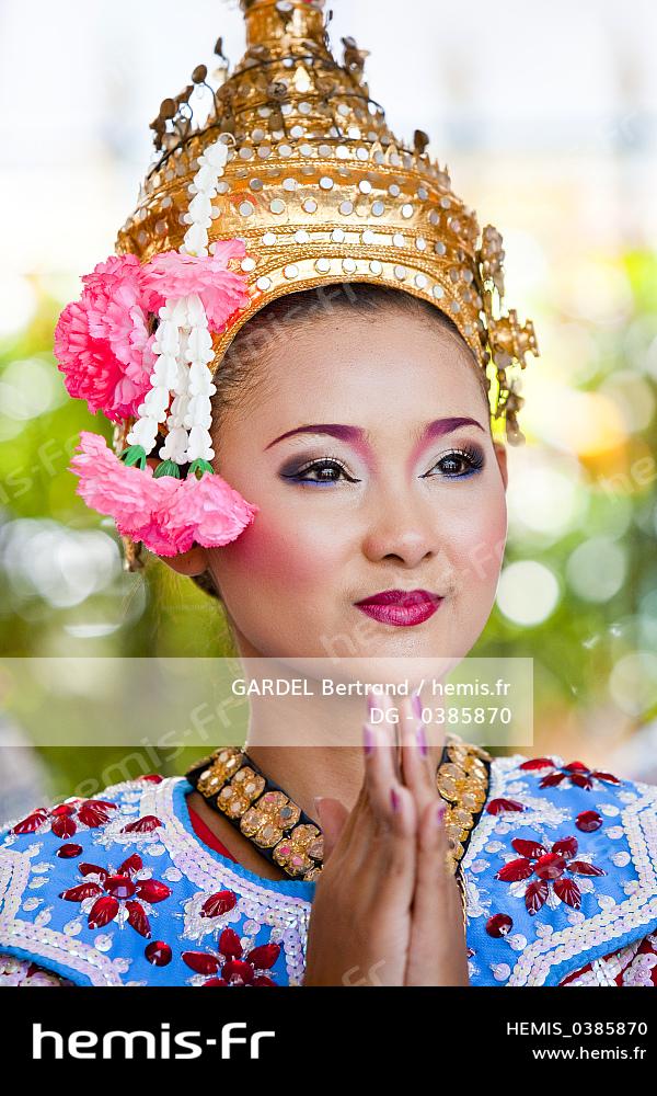 Thaïlande, Bangkok, Siam Square, le sanctuaire Erawan, danseuse traditionnelle
