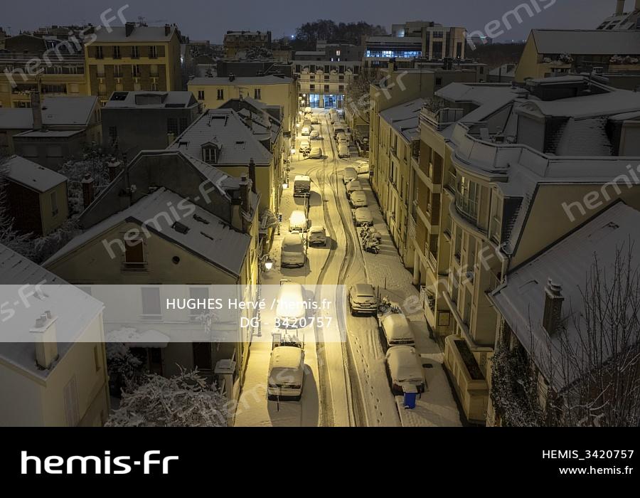 France, Hauts de Seine, Asnieres sur Seine, Barreau street on snow