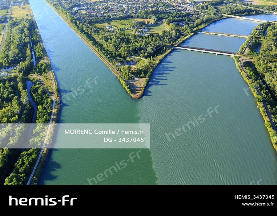 France, Drome, Pont de l'Isere, confluence of Isere and Rhone (aerial view)
