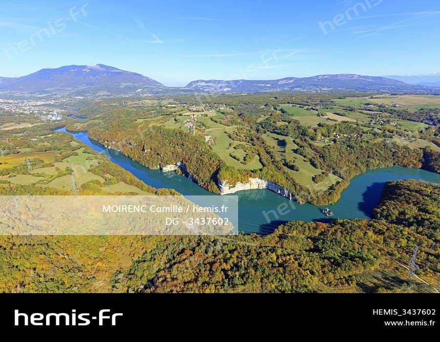 France, Ain, Injoux Genissiat, around the Genissiat dam on the Rhone (aerial view)