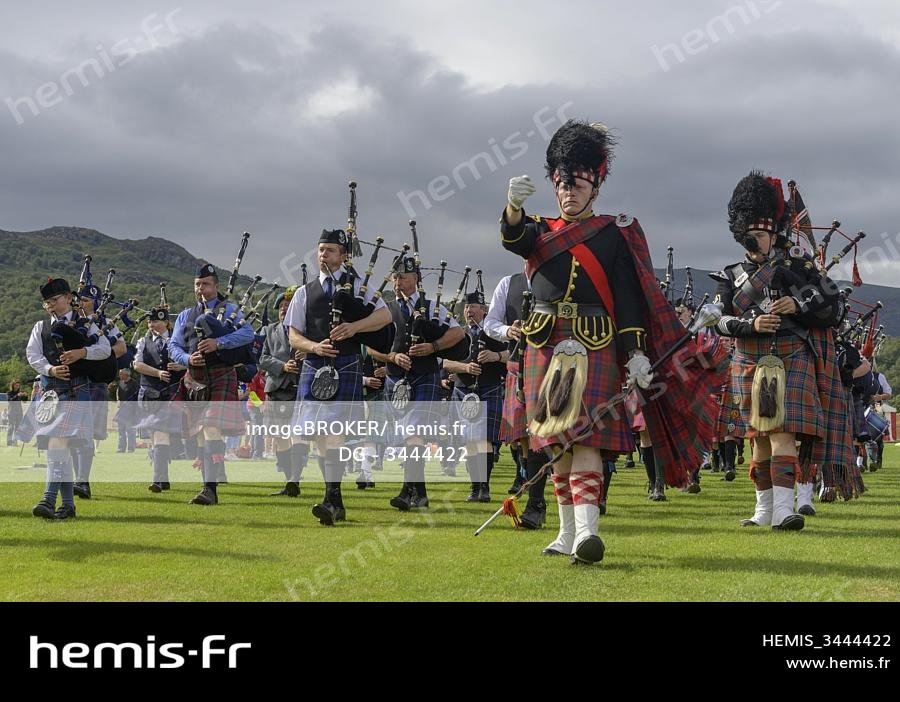 March of the Pipe Bands, Highland Games, Newtonmore, Scotland, United Kingdom, Europe