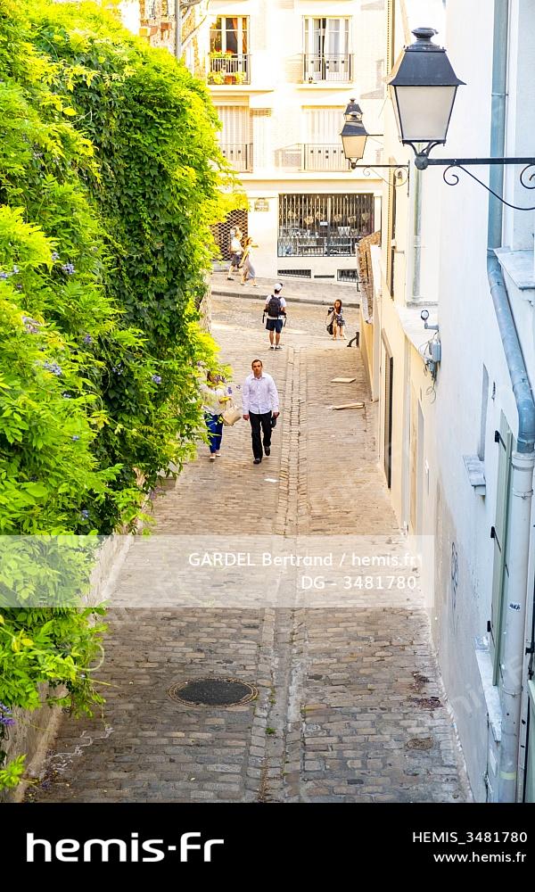 France, Paris (75), la Butte Montmartre, ruelle en escalier