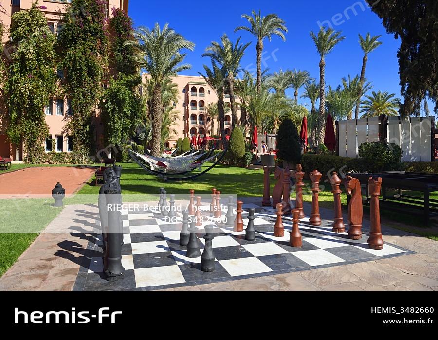 Morocco, High Atlas, Marrakech, Imperial city, Hivernage district, Hotel Sofitel Marrakech Palais Imperial, giant chess game in the gardens