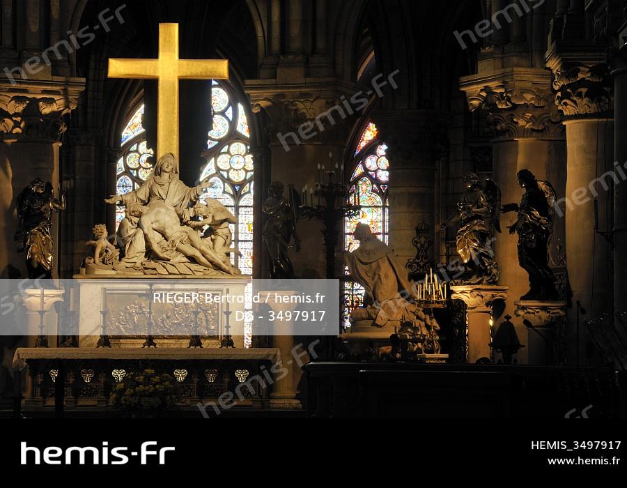 France, Paris, area listed as World Heritage by UNESCO, Ile de la Cite, Notre Dame Cathedral, the choir, Pietà of Nicolas Coustou created in 1723 and Louis XIII by Guillaume Coustou