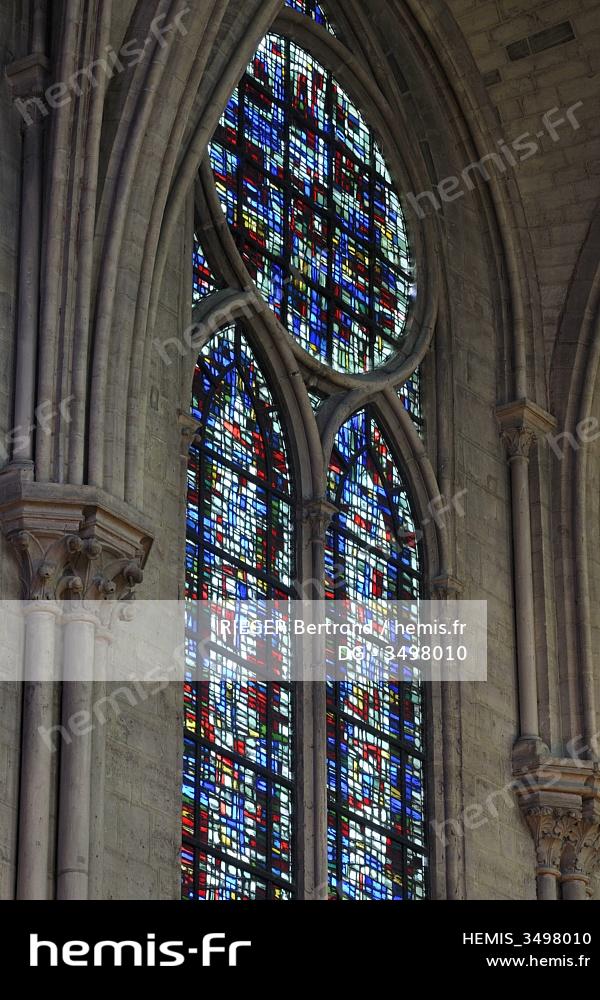 France, Paris (75), zone classée Patrimoine Mondial de l'UNESCO, île de la Cité, la cathédrale Notre-Dame, les verrières de Jacques Le Chevallier