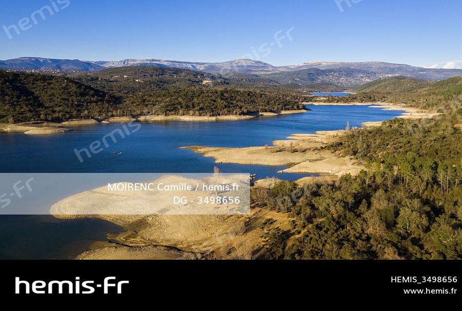 France, Var, Pays de Fayence, Tanneron, Saint Cassian Lake (aerial view)