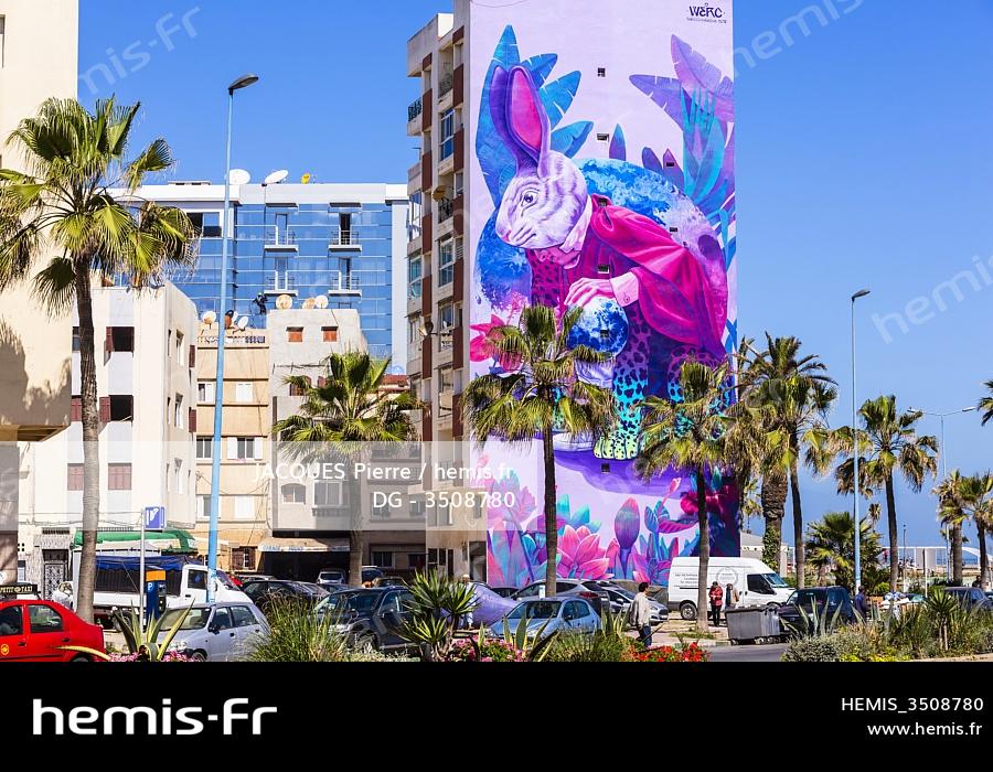 Morocco, Casablanca, mural boulevard Mohammed Zerktouni