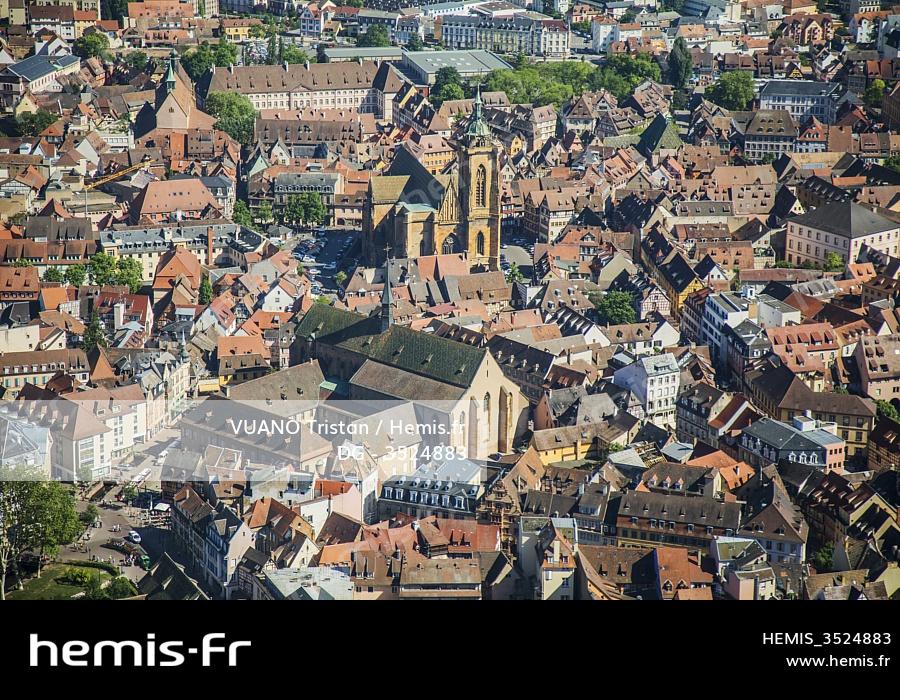 France, Haut-Rhin (68), Colmar, centre ville avec cathédrale collégiale Saint-Martin (vue aérienne)
