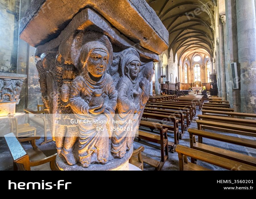France, Puy-de-Dôme (63), Mozac, abbatiale Saint-Pierre-et-Saint-Caprais, chapiteau de la Résurrection du XIIe siècle