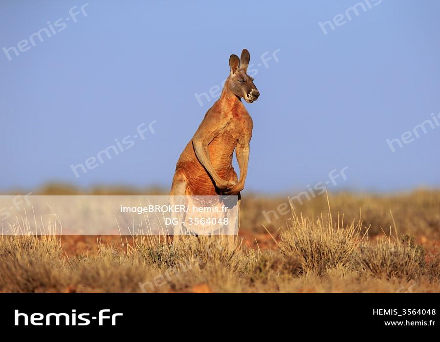 Red kangaroo -Macropus rufus-, adult male, standing in grassland, Sturt National Park, New South Wales, Australia, Oceania