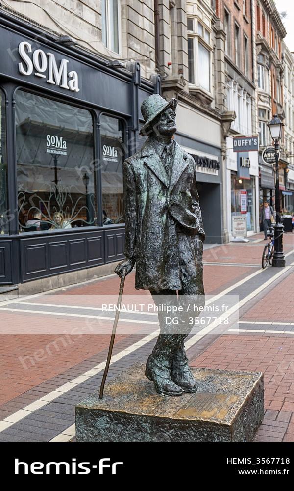 Ireland, Dublin, Earl Street, the statue of the famous writer James Joyce