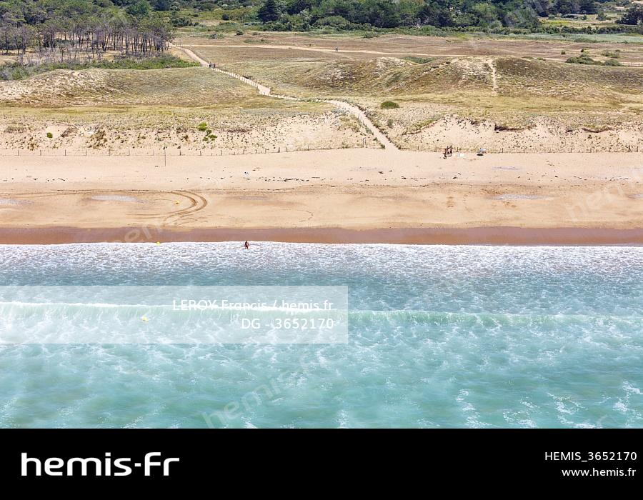 France, Vendee, Bretignolles sur Mer, the Dunes beach in summer (aerial view)