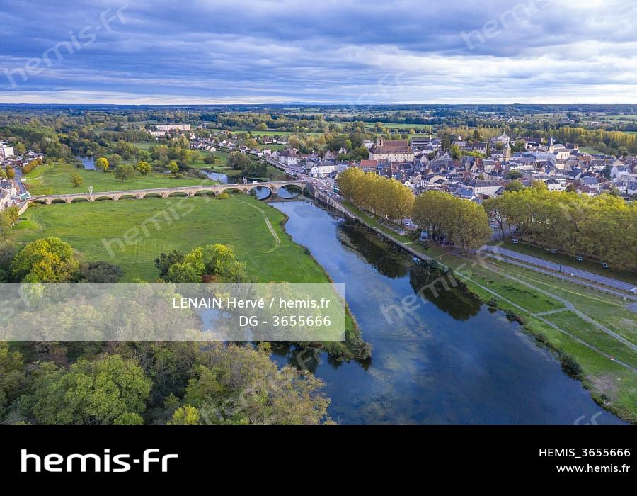 France, Nievre, Decize, city and bridge over the Old Loire river (aerial view)