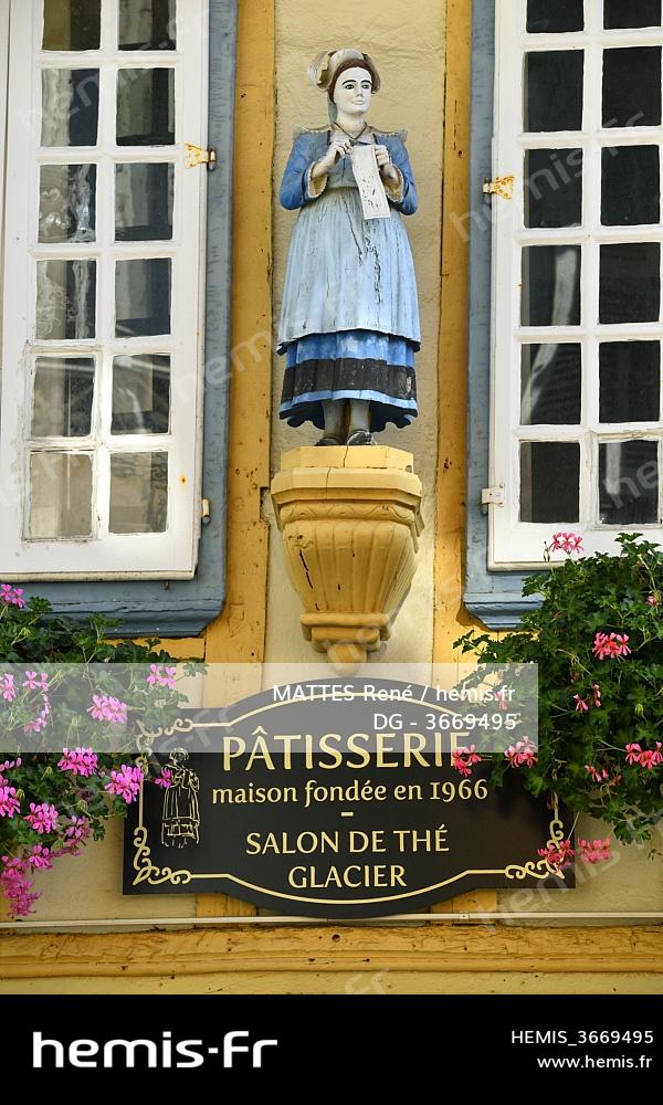 France, Finistere, Quimper, medieval houses on Kereon street, pastry shop Les Macarons de Philomene