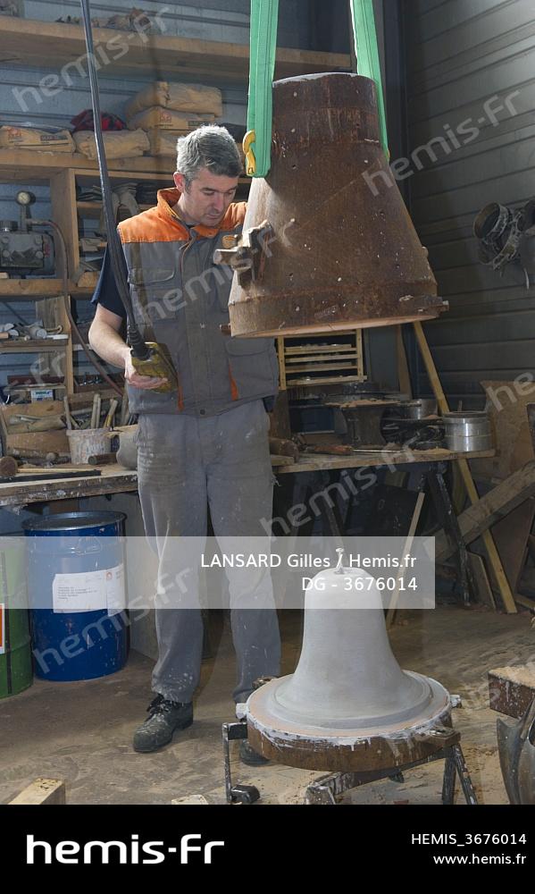 France, Haute Savoie, Annecy, Sevrier, the foundry Paccard, the company with ancestral know-how manufactures bells, demoulding a small bell