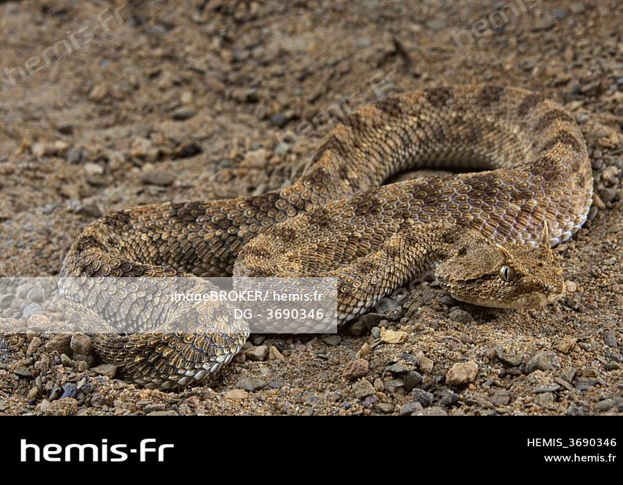 Vipère cornue -Cerastes cerastes-, camouflé sur le sol, l'Egypte, l'Afrique