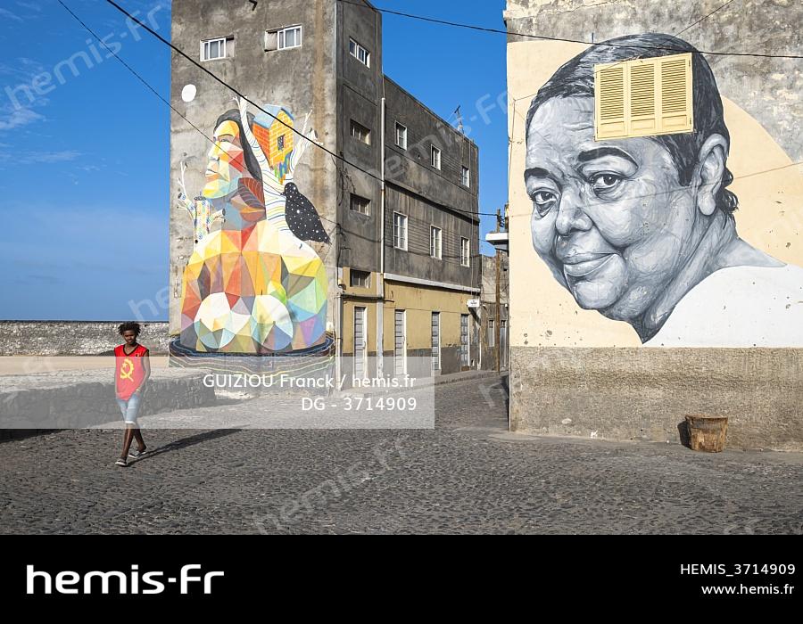 Cape Verde, Santo Antao island, Ribeira Grande, mural of Cesaria Evora