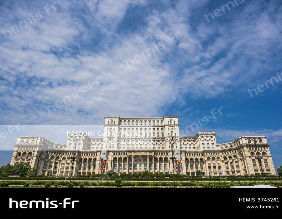 Roumanie, Munténie, Bucarest, le palais du parlement de style socréal est l'un des plus hauts bâtiments d'Europe, il a été construit à partir de 1984 pour le dictateur Nicolae Ceaușescu