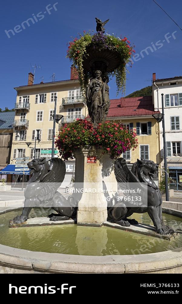France, Jura, Morez, place Henri Lissac, fountain of 1840,