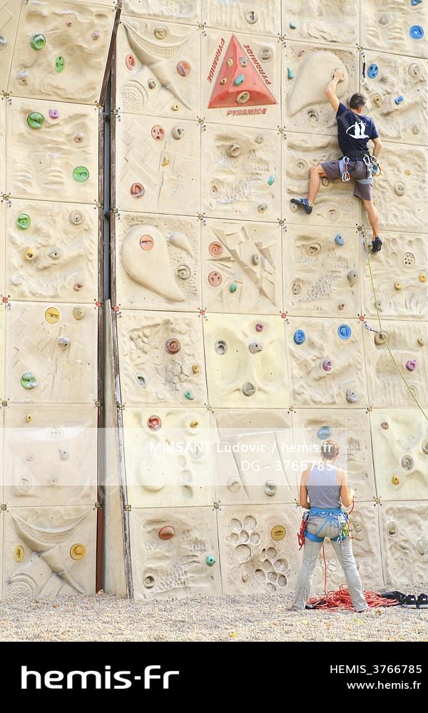France, Haute Vienne, Limoges, exterior climbing wall on the banks of the Vienne
