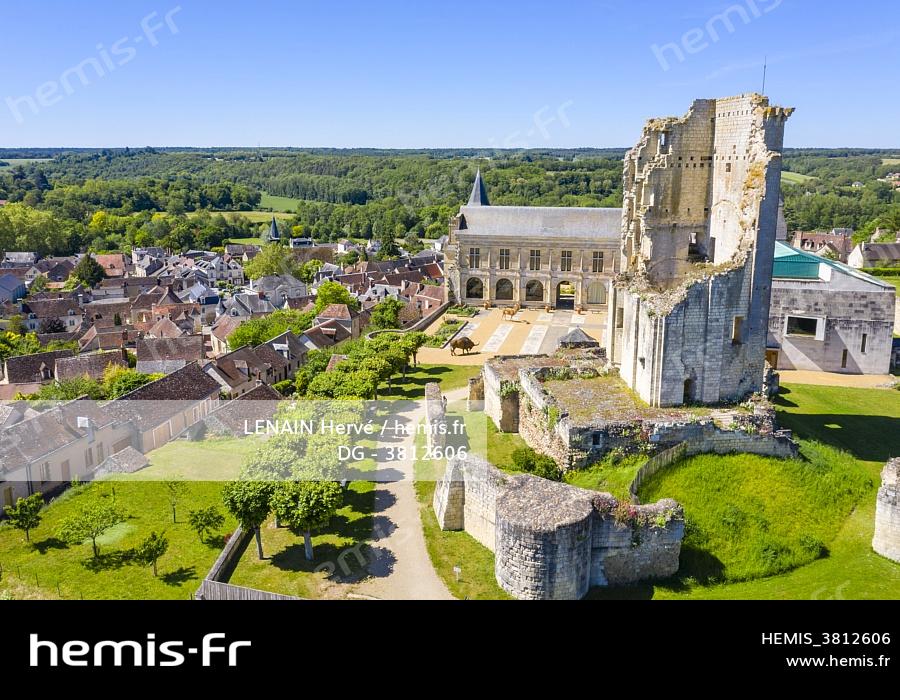 France, Indre-et-Loire (37), Le Grand-Pressigny, château du Grand-Pressigny et Musée de la Préhistoire du Grand-Pressigny (vue aérienne)